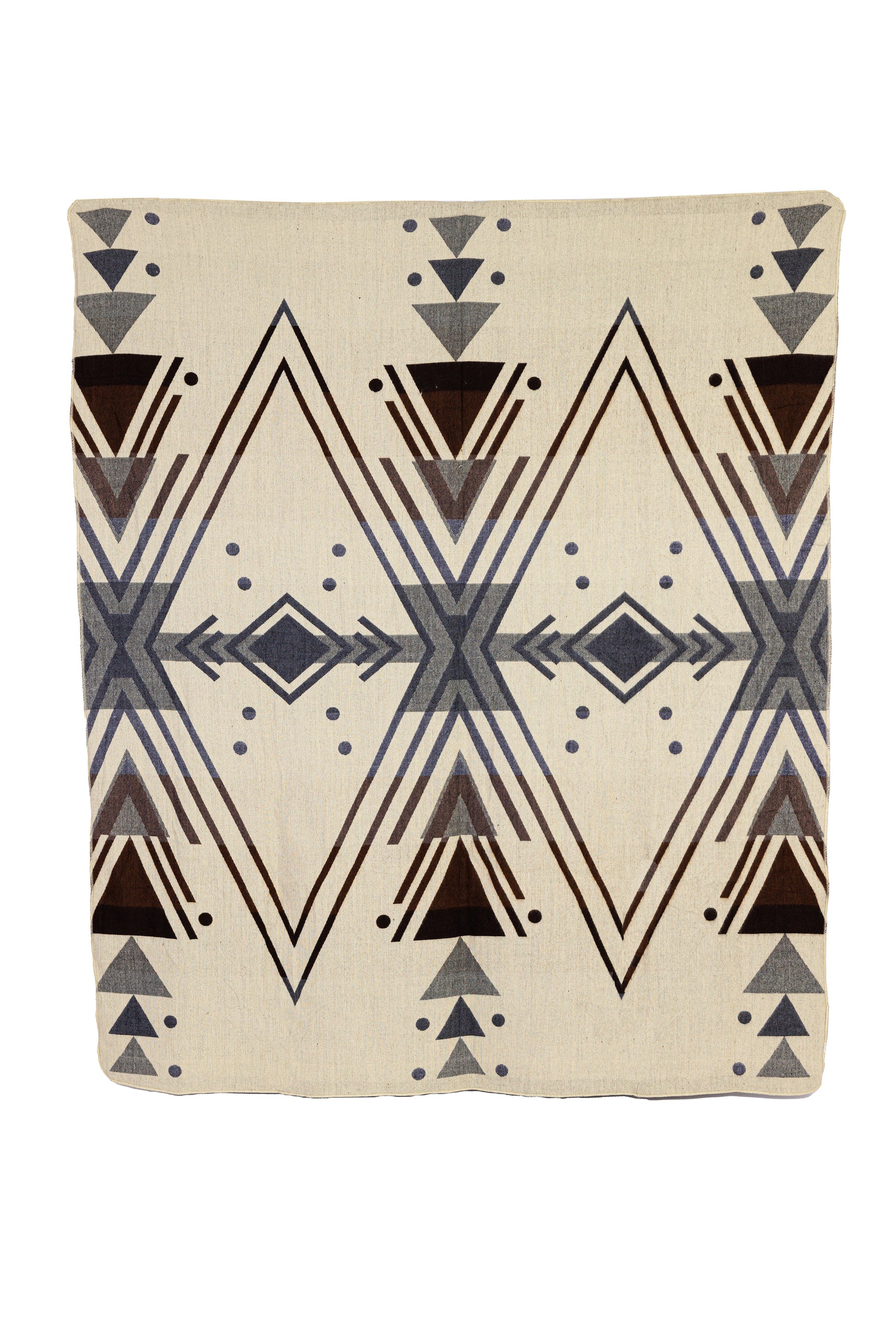 Blending luxuriously soft alpaca fibers with subtle polyester threads for color and superior softness, these throws are beautifully handmade, very cozy, and versatile — ideal for styling across seasons or adding artisanal warmth to modern interiors. Our Chevron Throw has shades of gray, brown, black, and cream, and is reversible. The other side features a light cream with accents of gray and black.
