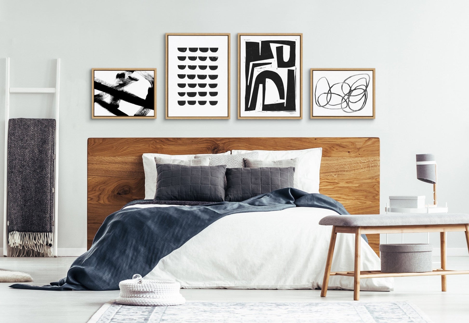 Be prepared to wow your guests with this gorgeous modern black and white abstract art set. Printed and framed in the USA in Waunakee, Wisconsin, this framed floating canvas art will be a pleasure to look at every day in your living room, bedroom, office, or any room in the home. This art print also makes an excellent gift for birthdays, holidays, or house-warming parties. Printed on gallery-wrapped canvas and framed with a lightweight polystyrene frame, this wall art is easy to display on the wall.