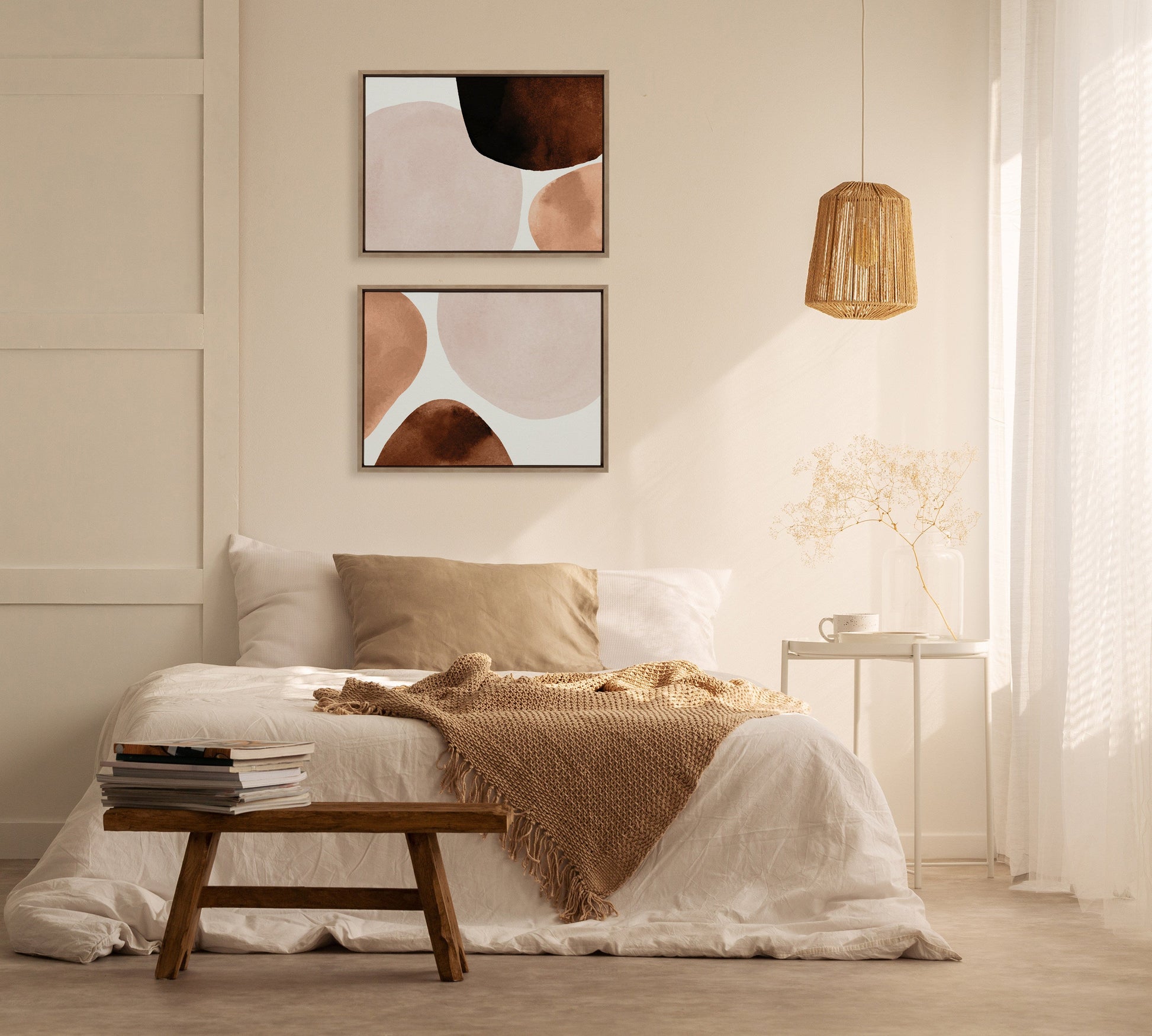 This shapely art print brings abstract modernity and calming neutrals to any surface to calm the vibe of your home. Printed and framed in the USA in Waunakee, Wisconsin, this framed floating canvas art will be a pleasure to look at every day in your living room, bedroom, office, or any room in the home. This art print also makes an excellent gift for birthdays, holidays, or house-warming parties. Printed on gallery-wrapped canvas and framed with a lightweight polystyrene frame, this wall art is easy to display on the wall.